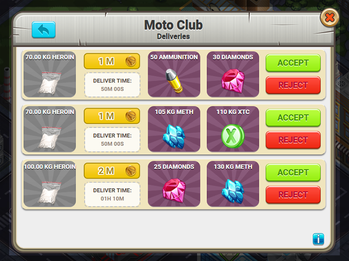 Tijd voor het echte werk! Start met de productie van Heroïne, als je dit gebouw eenmaal hebt unlocked vind je ingrediënten die je nodig hebt voor de productie. Om onder de politie radar te blijven exporteer je het product via de Motor Club!