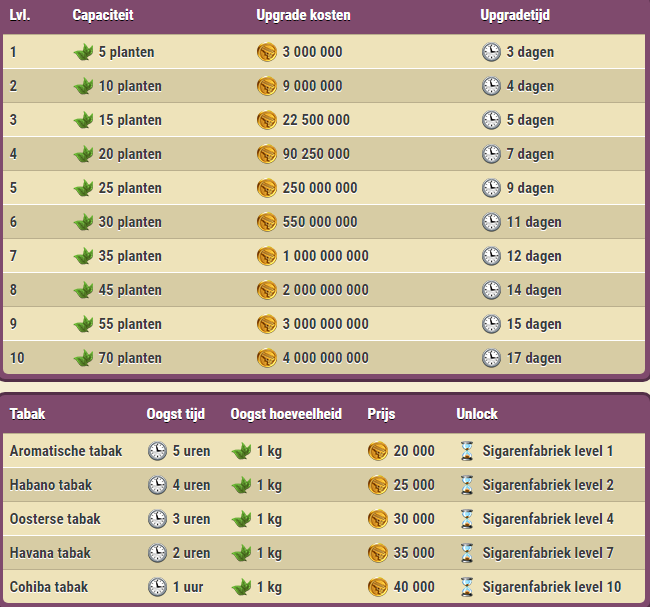 Als de tabak is geoogst kun je sigaren maken en verkopen in je Sigarenfabriek.